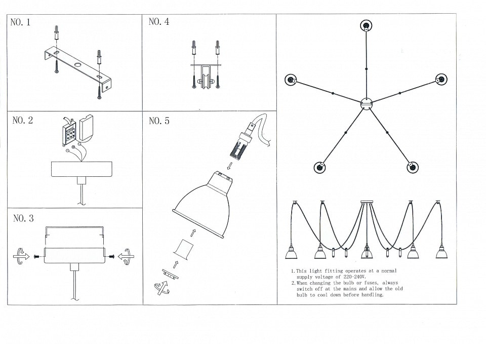 С диаметром 145 мм и высотой 250 мм, светильник идеально впишется в любой интерьер. Он оснащен пятью плафонами, направленными вниз, что обеспечивает равномерное освещение пространства. Максимальная мощность лампы составляет 40 Вт, а общее количество ламп — 5, что позволяет достичь общей мощности в 200 Вт. Обратите внимание, что лампы в комплекте отсутствуют, поэтому вы можете выбрать подходящие лампы с цоколем E14 по вашему вкусу.