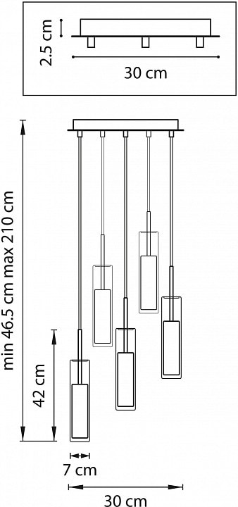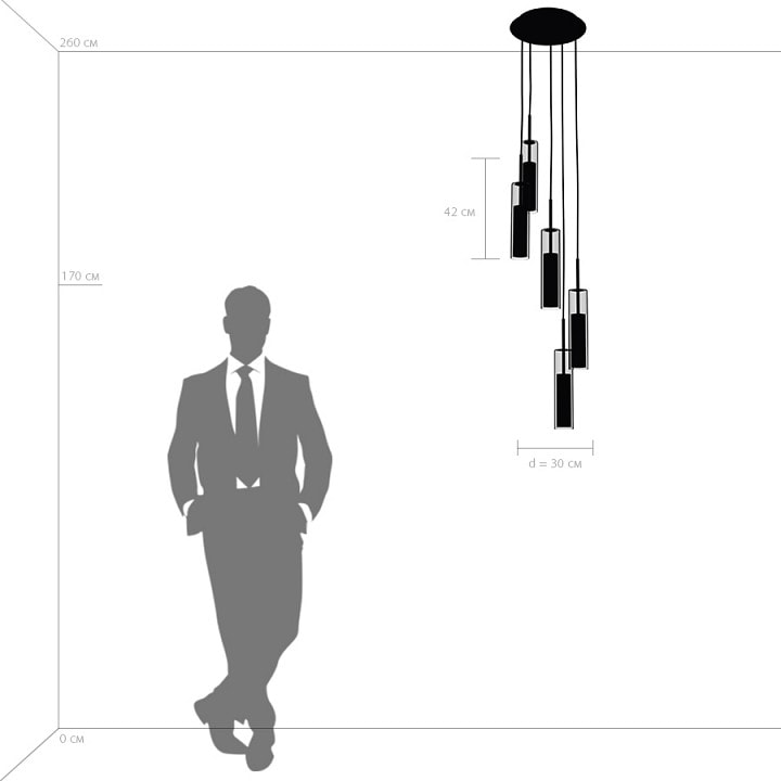 С диаметром 300 мм и высотой 465 мм, светильник прекрасно впишется в пространство, обеспечивая равномерное освещение. Он оснащен пятью плафонами, направленными вниз, что позволяет создать мягкий и комфортный свет. Максимальная мощность лампы составляет 40 Вт, а общая мощность достигает 200 Вт, что дает возможность использовать светильник для освещения больших помещений.