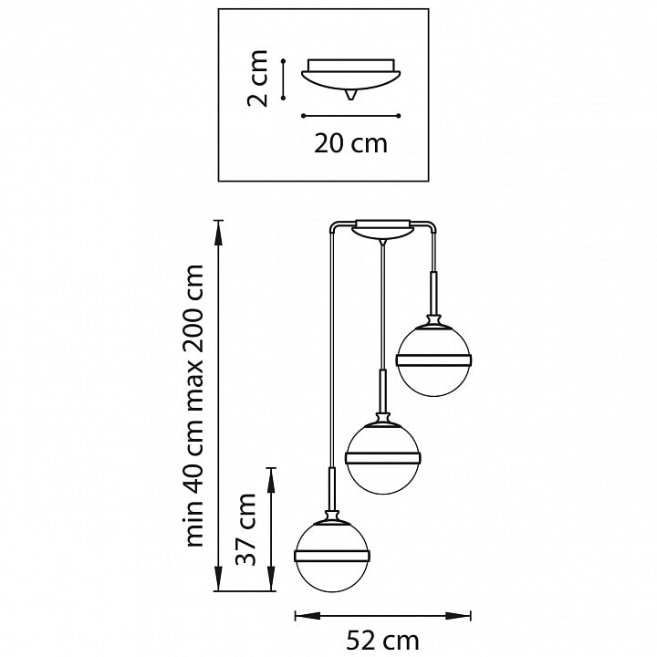С диаметром 520 мм и высотой 400 мм, светильник привлекает внимание и создает эффектный акцент в вашем помещении. Он оснащен тремя плафонами, направленными вниз, что обеспечивает равномерное и яркое освещение. Максимальная мощность лампы составляет 40 Вт, а общее количество ламп — 3, что позволяет достичь общей мощности в 120 Вт. Обратите внимание, что лампы в комплекте отсутствуют, поэтому вы можете выбрать подходящие лампы с цоколем E14 по вашему вкусу.