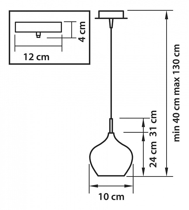 С диаметром 200 мм и высотой 300 мм, светильник обладает компактными размерами, что делает его подходящим для различных помещений. Он оснащен одним плафоном, который направлен вниз, обеспечивая равномерное и мягкое освещение. Максимальная мощность лампы составляет 40 Вт, а тип цоколя - E14, что позволяет использовать лампы накаливания для достижения желаемого эффекта.