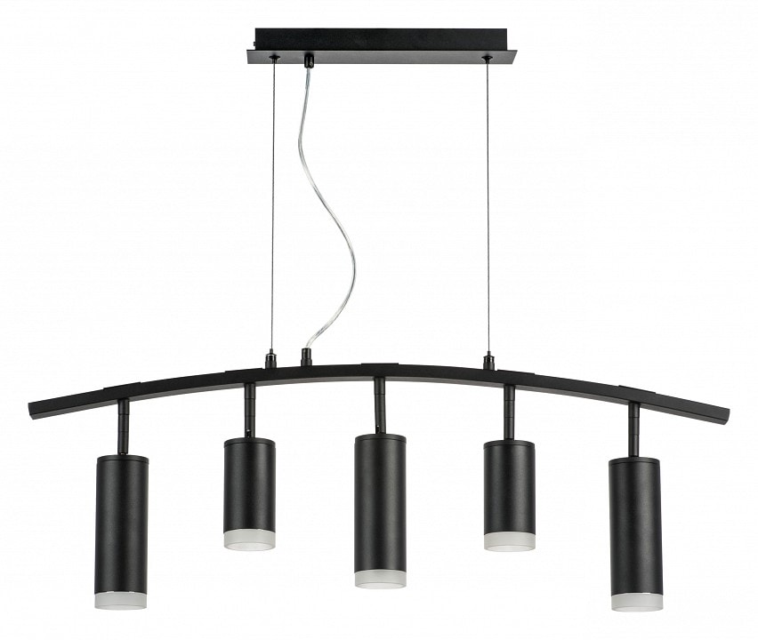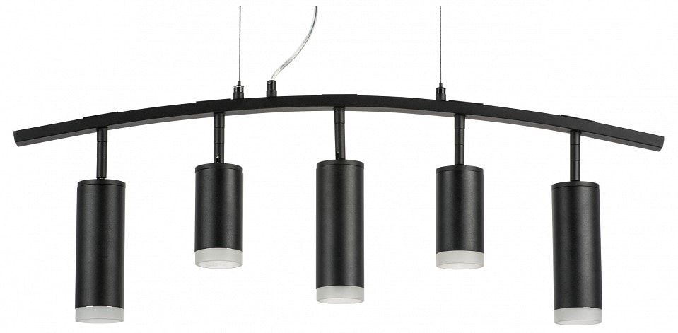 Светильник имеет высоту 395 мм и состоит из пяти плафонов, направленных вниз, что обеспечивает равномерное и яркое освещение. Каждый плафон выполнен в форме цилиндра, что добавляет изысканности и современности в дизайн. Максимальная мощность лампы составляет 50 Вт, а общая мощность достигает 250 Вт, что позволяет использовать светильник для освещения больших пространств.