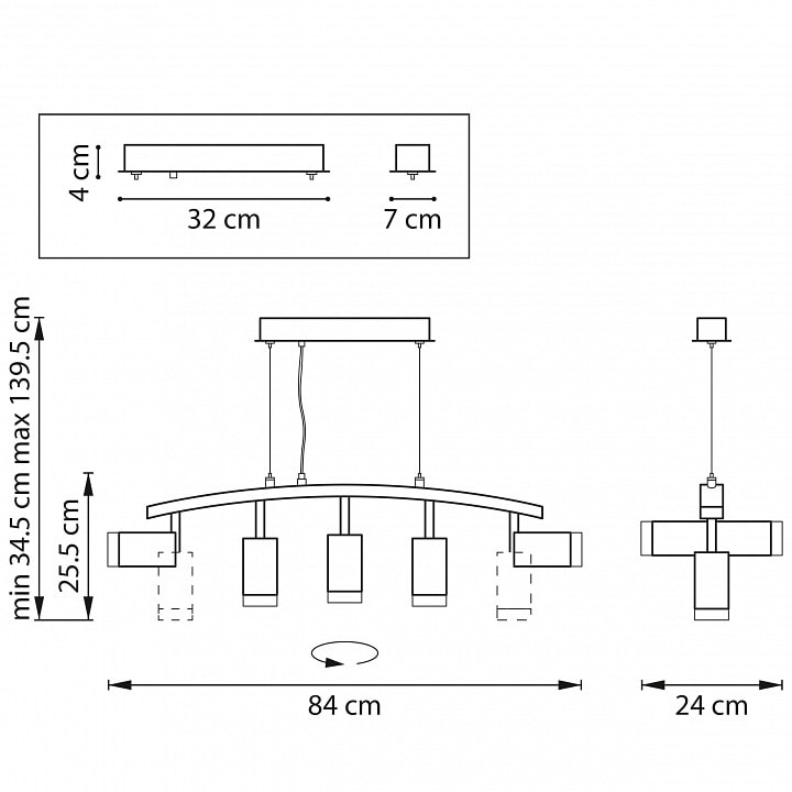 С высотой 345 мм и весом 2.645 кг, светильник легко устанавливается на потолок и не занимает много места. Он оснащен пятью плафонами, которые направлены вниз, обеспечивая равномерное и яркое освещение. Максимальная мощность каждой лампы составляет 50 Вт, что позволяет использовать галогеновые лампы с цоколем GU10 для достижения желаемого уровня яркости.