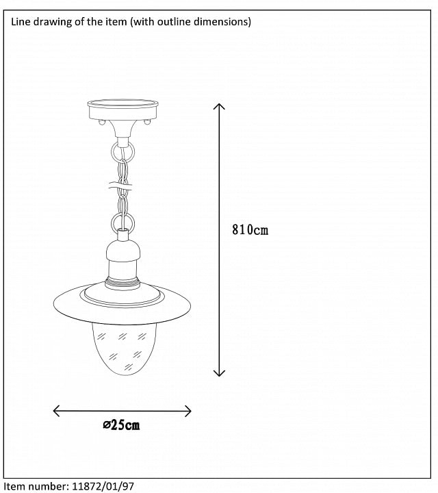 С диаметром 250 мм и высотой 810 мм, светильник Lucide Aruba идеально подходит для установки на потолке, создавая уютную атмосферу в любом помещении, включая улицу. Его форма плафона в виде колокола добавляет изысканности и стиля, а направленность света вниз обеспечивает равномерное освещение.