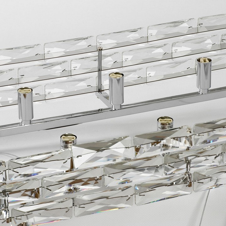 Светильник предназначен для установки на потолок и идеально подходит для гостиных, где требуется качественное и стильное освещение. Общая мощность светильника составляет 480 Вт, что позволяет использовать до 12 ламп, обеспечивая яркое и равномерное освещение.
