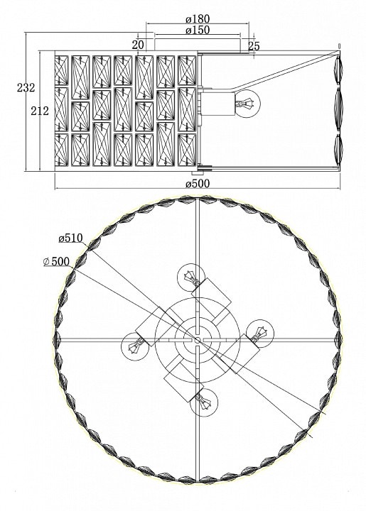 Светильник имеет диаметр 500 мм и высоту 212 мм, что делает его идеальным для размещения на потолке. Он оснащен одним плафоном, который направляет свет вниз, создавая мягкое и равномерное освещение. Максимальная мощность лампы составляет 60 Вт, а тип цоколя - E27. Обратите внимание, что лампы в комплект не входят, что дает вам возможность выбрать именно тот источник света, который подходит вашему интерьеру.