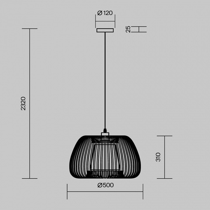 Светильник имеет диаметр 500 мм и высоту 400 мм, что делает его идеальным для размещения на потолке. Он оснащен одним плафоном, который направляет свет вниз, создавая мягкое и равномерное освещение. Максимальная мощность лампы составляет 60 Вт, а тип цоколя - E27, что позволяет использовать лампы накаливания для достижения желаемого эффекта.