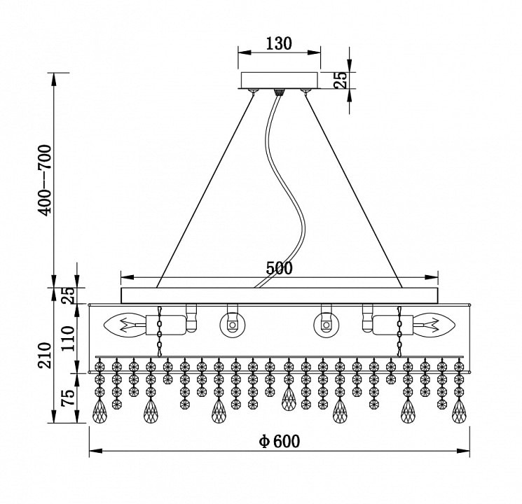 Светильник оснащен одним плафоном и поддерживает лампы накаливания с максимальной мощностью 60 Вт и цоколем E14. Обратите внимание, что лампы в комплект не входят, что дает вам возможность выбрать освещение по своему вкусу. Общая мощность светильника составляет 600 Вт, что позволяет использовать его в больших помещениях.