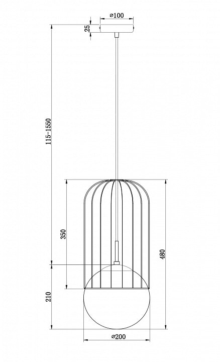 Светильник имеет диаметр 200 мм и высоту 595 мм, что делает его идеальным для размещения на потолке. Он оснащен одним плафоном, который направлен вниз, обеспечивая равномерное и мягкое освещение. Максимальная мощность лампы составляет 60 Вт, а тип цоколя – E27, что позволяет использовать лампы накаливания для достижения желаемого эффекта освещения.