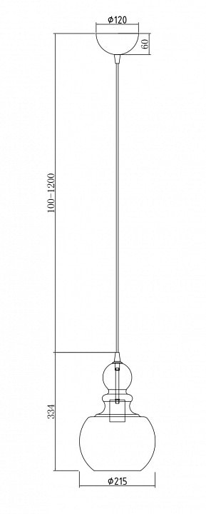 С диаметром 215 мм и высотой 434 мм, светильник идеально впишется в любой интерьер, добавляя ему нотку современности. Он оснащен одним плафоном, который направлен вниз, что позволяет равномерно освещать пространство. Максимальная мощность лампы составляет 60 Вт, а тип цоколя - E27, что дает вам возможность выбрать лампу по вашему вкусу.