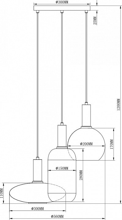 С диаметром 560 мм и высотой 1200 мм, светильник Moderli Martin V2892-3P привлекает внимание и создает эффектный акцент в вашем помещении. Он оснащен тремя плафонами, направленными вниз, что обеспечивает равномерное и мягкое освещение. Обратите внимание, что лампы в комплекте отсутствуют, но максимальная мощность каждой лампы составляет 60 Вт, что позволяет вам выбрать подходящие источники света для ваших нужд.