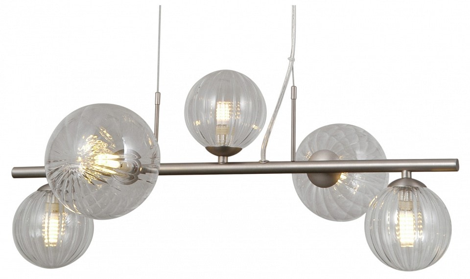 Светильник имеет высоту 270 мм и состоит из пяти сферических плафонов, которые направлены в стороны, обеспечивая равномерное распределение света по помещению площадью до 12.5 м². Максимальная мощность лампы составляет 5 Вт, а общая мощность всех ламп — 25 Вт. Обратите внимание, что лампы в комплекте отсутствуют, поэтому вы можете выбрать светодиодные лампы с цоколем G9, которые идеально подойдут для этого светильника.