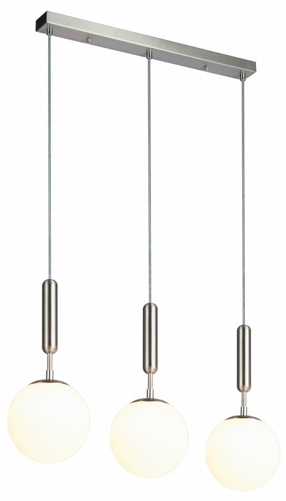 С высотой 1340 мм и тремя плафонами, направленными вниз, светильник обеспечивает равномерное освещение, создавая комфортные условия для приготовления пищи и семейных ужинов. Каждый плафон имеет сферическую форму, что добавляет изысканности и элегантности в общий вид изделия.