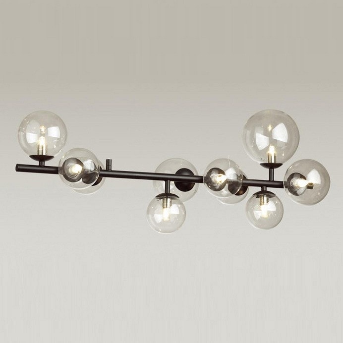 Светильник оснащен 10 плафонами, которые направлены в стороны и вниз, обеспечивая равномерное распределение света. Максимальная мощность лампы составляет 40 Вт, а общее количество ламп – 10, что позволяет достичь общей мощности в 400 Вт. Обратите внимание, что лампы в комплекте не поставляются, поэтому вы можете выбрать подходящие галогеновые лампы с цоколем G9 по вашему вкусу.