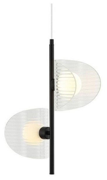 Светильник имеет диаметр 260 мм и высоту 650 мм, что делает его идеальным для размещения на потолке. Он оснащен двумя плафонами, которые направлены в стороны, обеспечивая равномерное распределение света по помещению. Максимальная мощность лампы составляет 5 Вт, а общая мощность достигает 10 Вт, что позволяет освещать площадь до 5 м².