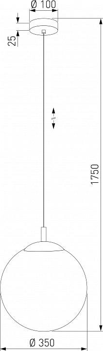 Светильник имеет диаметр 350 мм и высоту 1750 мм, что делает его идеальным для размещения на потолке. Он оснащен одним плафоном, который направлен вниз, обеспечивая равномерное освещение площади до 7.5 м². Максимальная мощность лампы составляет 15 Вт, а тип цоколя – E27. Обратите внимание, что лампы в комплекте не идут, что дает вам возможность выбрать светодиодную лампу [LED] по вашему вкусу.