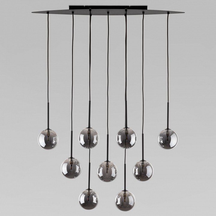 Светильник имеет высоту 1480 мм и состоит из 9 плафонов, которые направлены вниз, обеспечивая равномерное и мягкое освещение. Максимальная мощность каждой лампы составляет 8 Вт, что позволяет использовать светодиодные лампы типа G9 для экономии электроэнергии. Общая мощность светильника достигает 72 Вт, что делает его идеальным для освещения площади до 36 м².