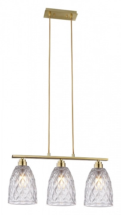 Светильник имеет три плафона, которые направлены вниз, обеспечивая равномерное и яркое освещение. Каждый плафон выполнен в форме расходящегося колокола, что придаёт изделию уникальный и привлекательный вид. Максимальная мощность лампы составляет 40 Вт, а общее количество ламп — 3, что позволяет достичь общей мощности в 120 Вт. Обратите внимание, что лампы в комплект не входят, поэтому вы можете выбрать подходящие по вашему вкусу.