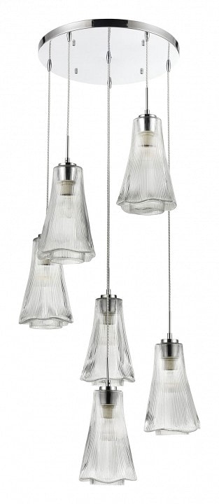 С диаметром 580 мм и высотой 368 мм, светильник идеально подходит для потолочного размещения. Он оснащен 6 плафонами, которые направлены вниз, обеспечивая равномерное и мягкое освещение. Каждый плафон имеет квадратную пирамидальную форму, что добавляет оригинальности и современности в дизайн.