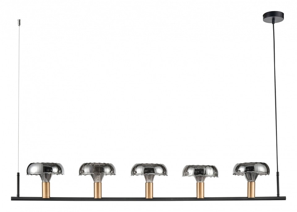 С высотой 205 мм и пятью плафонами в форме цветка колокольчика, этот светильник не только освещает пространство, но и служит эффектным элементом декора. Плафоны направлены вверх, что создает мягкое и рассеянное освещение, идеально подходящее для вечерних встреч с друзьями или семейных ужинов.