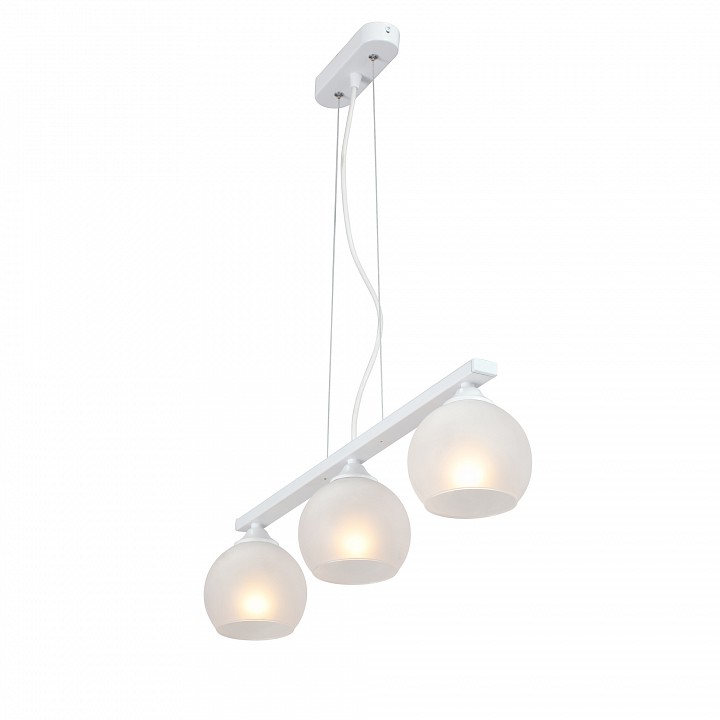 Светильник имеет высоту 150 мм и состоит из трех плафонов, направленных вниз, что обеспечивает равномерное освещение пространства. Каждый плафон имеет сферическую форму, что добавляет изысканности и элегантности в общий дизайн. Максимальная мощность лампы составляет 40 Вт, а общая мощность светильника достигает 120 Вт, что позволяет использовать его для освещения даже больших помещений.