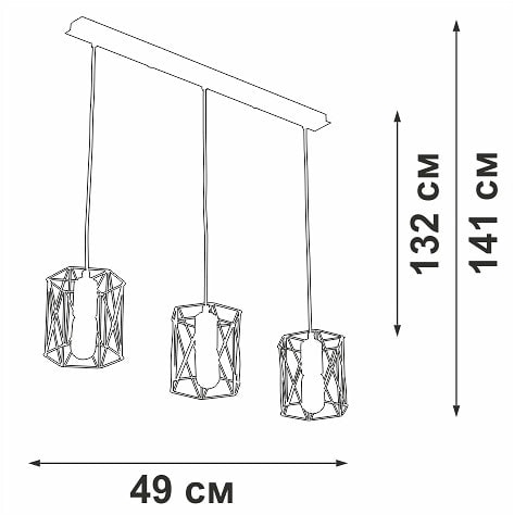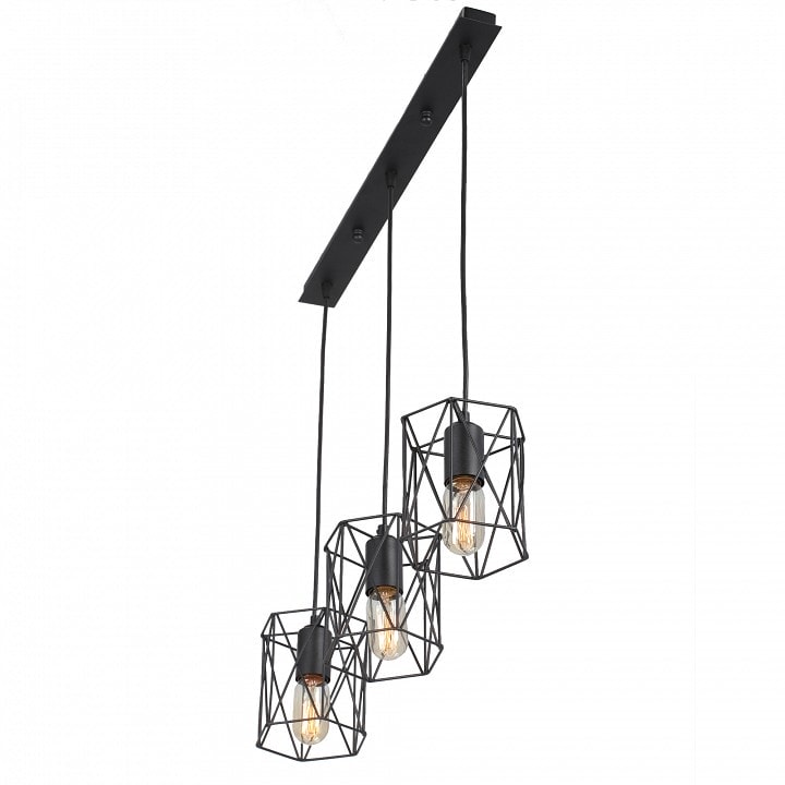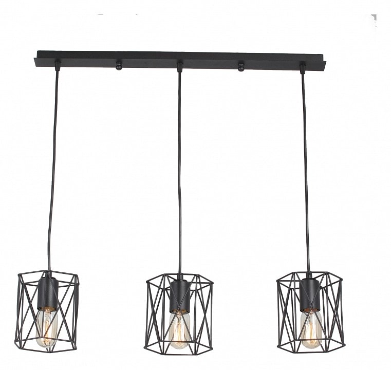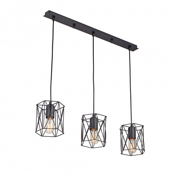 Светильник имеет три плафона, которые направлены вниз, обеспечивая равномерное и мягкое освещение. Каждый плафон выполнен в форме многоугольной призмы, что добавляет изысканности и оригинальности в дизайн. Максимальная мощность лампы составляет 40 Вт, а общая мощность достигает 120 Вт, что позволяет использовать светильник для освещения больших пространств.
