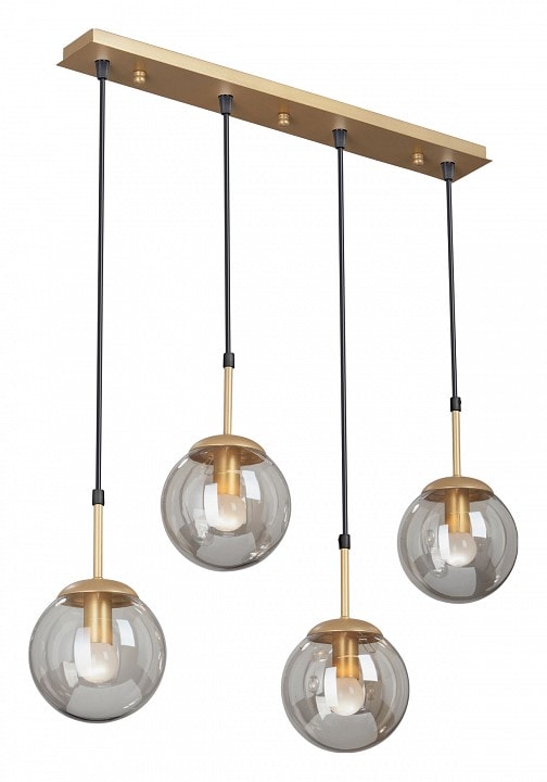 Светильник имеет высоту 1150 мм и состоит из четырех плафонов, направленных вниз, что обеспечивает равномерное освещение пространства. Каждый плафон выполнен в форме сферы, что придаёт изделию оригинальный вид. Максимальная мощность лампы составляет 40 Вт, а общее количество ламп – 4, что позволяет достичь общей мощности в 160 Вт. Обратите внимание, что лампы в комплекте отсутствуют, поэтому вы можете выбрать подходящие лампы с цоколем E14 по вашему вкусу.