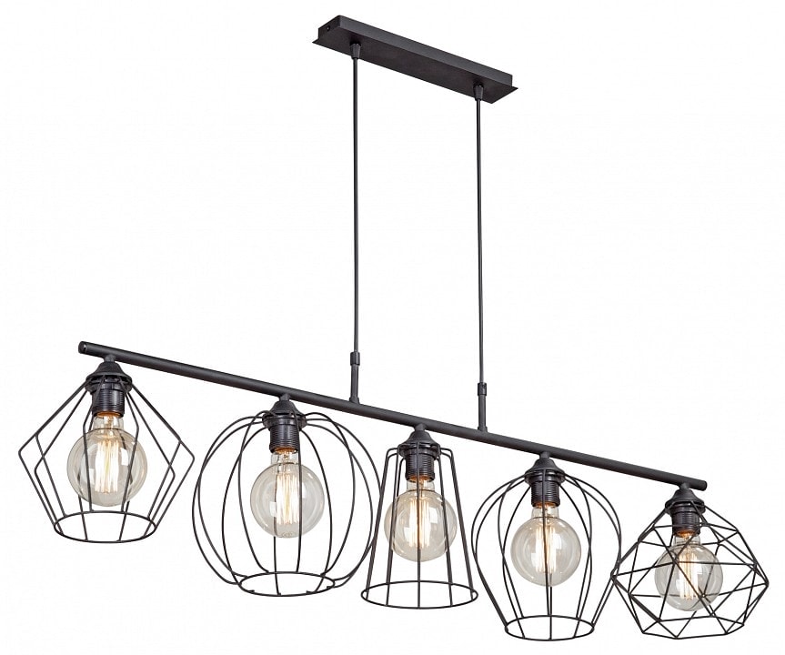 Светильник имеет высоту 1400 мм и состоит из пяти плафонов, которые направлены вниз, обеспечивая равномерное освещение. Максимальная мощность лампы составляет 40 Вт, а общая мощность достигает 200 Вт, что позволяет использовать его в помещениях различного назначения. Обратите внимание, что лампы в комплекте отсутствуют, но вы можете выбрать подходящие лампы с цоколем E27, чтобы создать желаемую атмосферу.