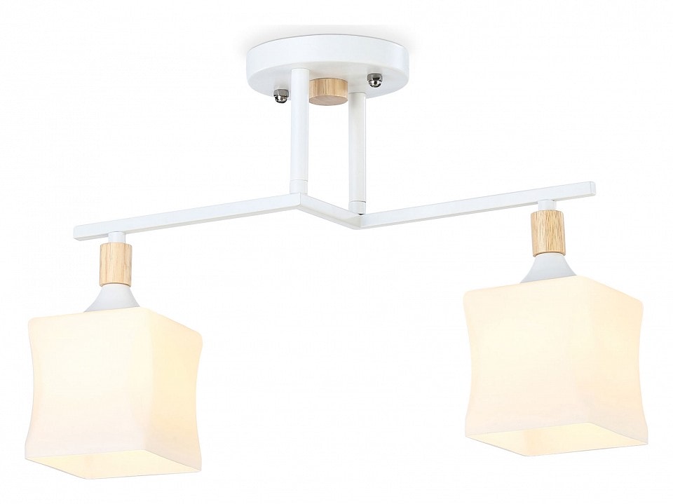Светильник оснащен двумя плафонами с квадратной призматической формой, которые направлены вниз, обеспечивая равномерное и мягкое освещение. Максимальная мощность лампы составляет 40 Вт, что позволяет использовать лампы накаливания с цоколем E27. Обратите внимание, что лампы в комплект не входят, что дает вам возможность выбрать именно те источники света, которые подойдут вашему интерьеру.
