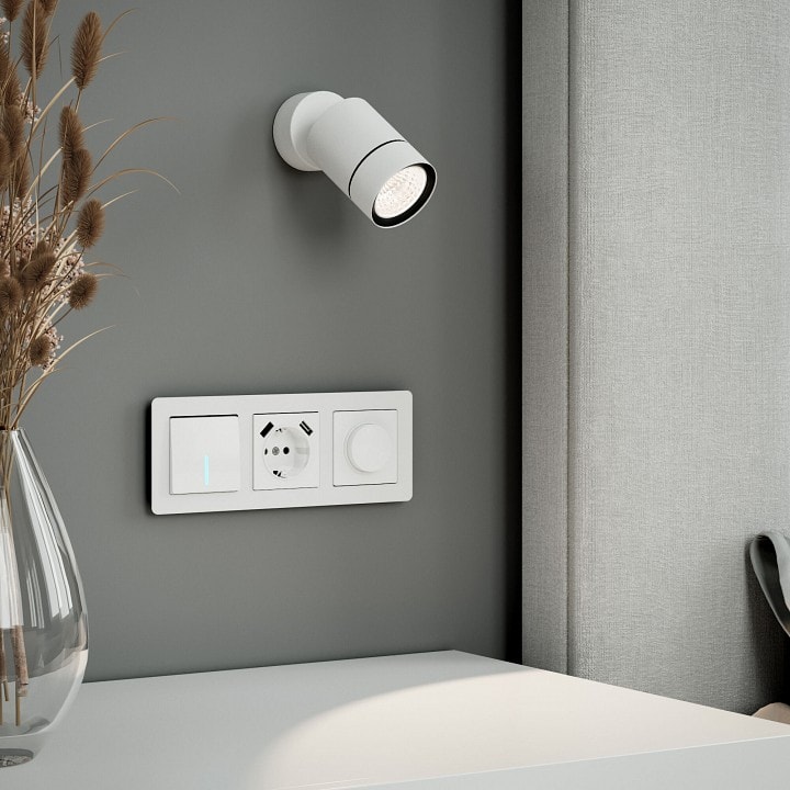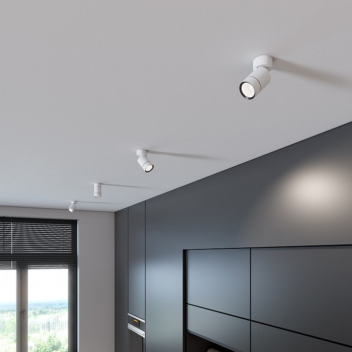 Светильник имеет диаметр 60 мм и высоту 115 мм, что делает его компактным и удобным для установки на потолке. Он оснащен одним плафоном, который можно направить в любое направление, обеспечивая гибкость в освещении. Максимальная мощность лампы составляет 15 Вт, что позволяет использовать светодиодные лампы типа GU10 для создания яркого и экономичного освещения.