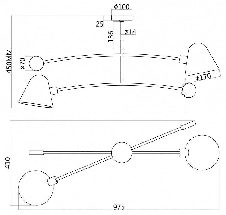 Светильник выполнен в стиле модерн и оснащен двумя плафонами, которые можно направить в стороны или вниз, обеспечивая равномерное освещение в помещении. Максимальная мощность лампы составляет 40 Вт, а общее количество ламп – 2. Обратите внимание, что лампы в комплекте отсутствуют, поэтому вы можете выбрать подходящие лампы с цоколем E14 по вашему вкусу.