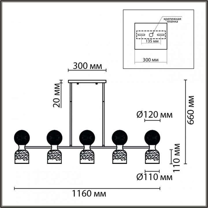 Светильник Lumion Tauna 8114/10 имеет высоту 660 мм и оснащен 10 плафонами, которые можно направлять как вверх, так и вниз, обеспечивая равномерное и комфортное освещение. Максимальная мощность лампы составляет 40 Вт, а общая мощность достигает 400 Вт, что позволяет осветить площадь до 22.3 м². Обратите внимание, что лампы в комплекте отсутствуют, поэтому вы можете выбрать подходящие по вашему вкусу.