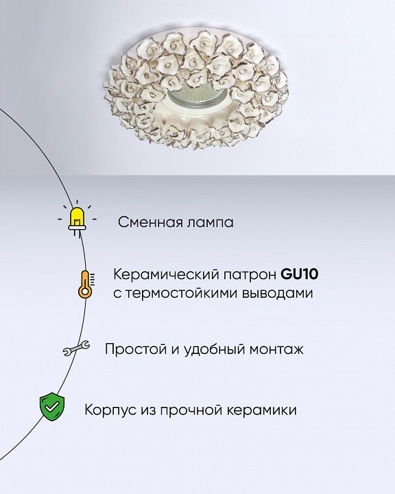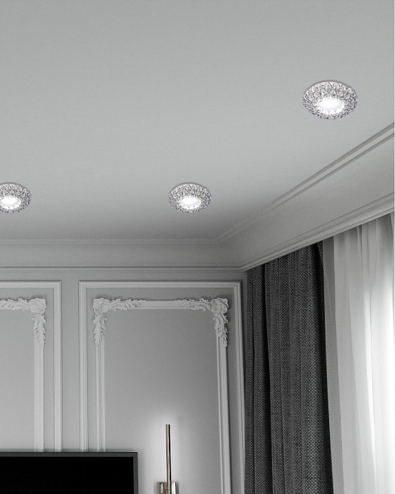Светильник имеет диаметр 140 мм и глубину 35 мм, что позволяет легко интегрировать его в потолочные конструкции. Высота встраивания составляет всего 55 мм, а выступ — 20 мм, что делает его незаметным, но при этом функциональным элементом интерьера. Максимальная мощность лампы составляет 40 Вт, а тип цоколя — GU5.3, что позволяет использовать галогеновые лампы для создания яркого и комфортного освещения.