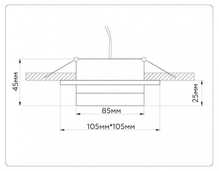Встраиваемый светильник имеет размер врезного отверстия 90 мм и степень пылевлагозащиты IP-20, что делает его идеальным для использования в помещениях с низким уровнем влажности, таких как гостиные. Напряжение питания составляет 220 В, что соответствует стандартам большинства жилых помещений в России.
