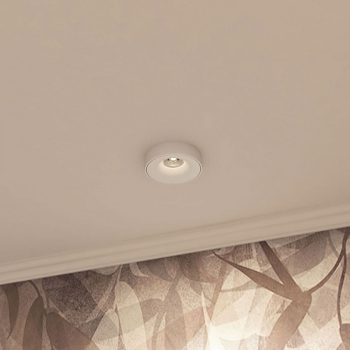 Светильник выполнен в Словении и отличается высоким качеством материалов и сборки. Его диаметр составляет 98 мм, а глубина — 30 мм, что позволяет легко интегрировать его в потолочные конструкции. Размер врезного отверстия составляет 70 мм, что делает установку максимально простой и быстрой.