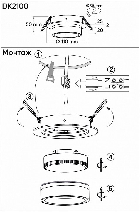 Светильник предназначен для установки в потолок и обеспечивает направленное освещение вниз, что делает его идеальным для освещения зон, требующих акцентного света. Максимальная мощность лампы составляет 15 Вт, а тип цоколя GX53 позволяет использовать светодиодные лампы, что обеспечивает экономию электроэнергии и долговечность.