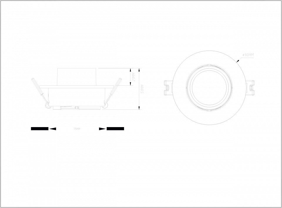 Светильник обеспечивает освещение площади до 7.5 м², что делает его идеальным для использования в гостиных и других помещениях. Размер врезного отверстия составляет 75 мм, а упаковка имеет размеры 91x91x52 мм, что упрощает транспортировку и установку.