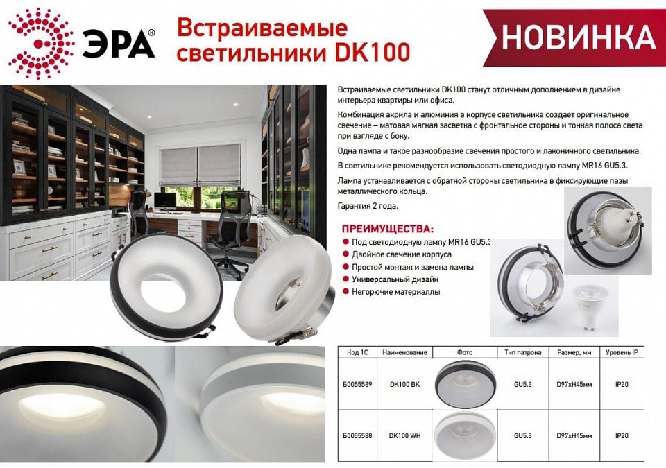 Не упустите возможность преобразить ваше пространство с помощью встраиваемого светильника Эра DK100 BK. Закажите его прямо сейчас на сайте pletora.ru и наслаждайтесь качественным освещением в вашем доме!