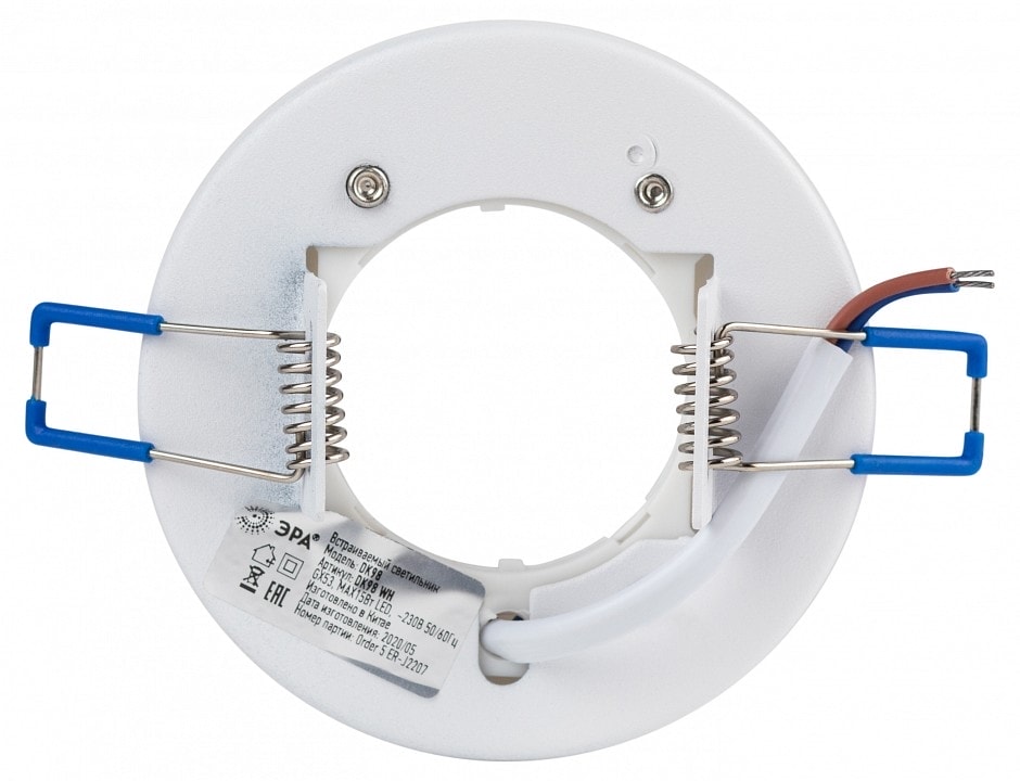 Светильник Эра DK 98 также обладает степенью пылевлагозащиты IP20, что делает его безопасным для использования в помещениях с нормальными условиями. Размер врезного отверстия составляет 60 мм, что упрощает установку и замену светильника.