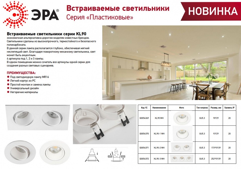 Встраиваемый светильник Эра KL90 WH - идеальное решение для вашего интерьера