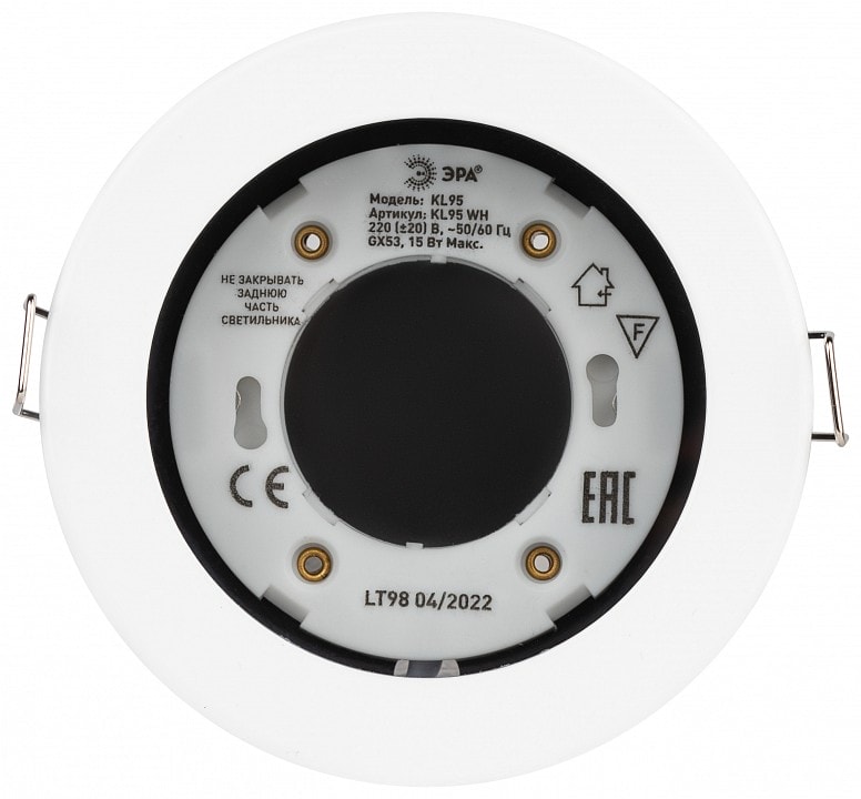 Эра KL95 WH работает на напряжении 220 В и поддерживает светодиодные лампы с максимальной мощностью 15 Вт. Обратите внимание, что лампы в комплекте не поставляются, поэтому вы можете выбрать подходящую лампу по своему вкусу. Тип цоколя GX53 позволяет легко заменить лампу при необходимости.