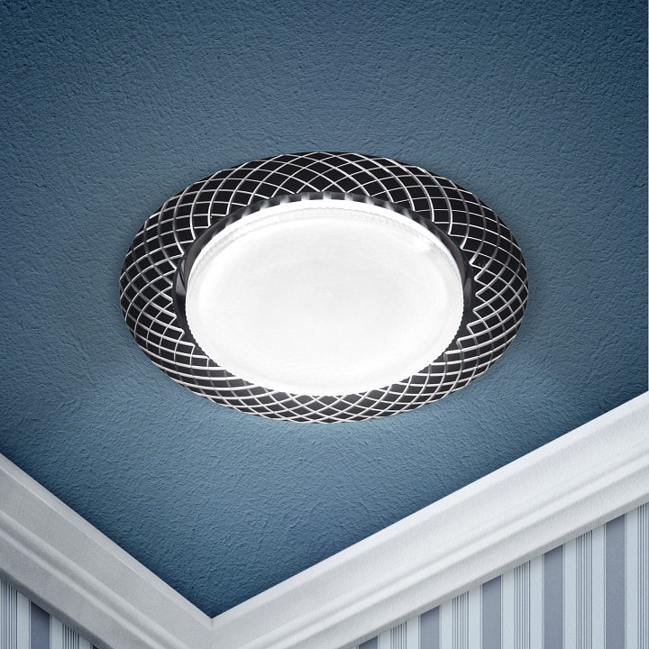 Светильник работает на напряжении 220 В и поддерживает светодиодные лампы с максимальной мощностью 15 Вт. Обратите внимание, что лампы в комплекте не поставляются, поэтому вы можете выбрать подходящую лампу по своему вкусу. Тип цоколя — GX53, что обеспечивает совместимость с широким ассортиментом светодиодов.