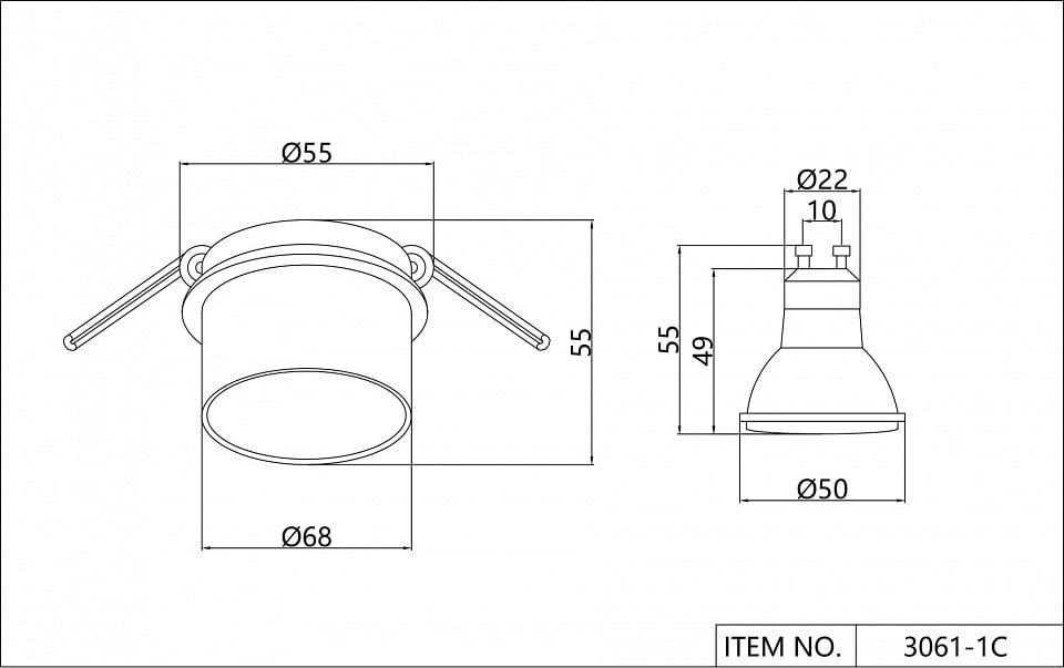 Светильник Favourite Rasta 3061-1C имеет степень пылевлагозащиты IP20, что делает его идеальным для использования в помещениях с низким уровнем влажности. Размер врезного отверстия составляет 55 мм, а упаковка имеет размеры 75x75x65 мм, что делает его удобным для транспортировки и установки.