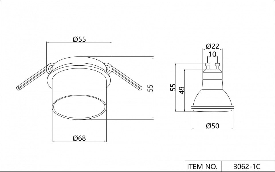 Светильник имеет массу всего 0.1 кг и поставляется в компактной упаковке размером 75x75x65 мм, что делает его удобным для транспортировки и установки. Размер врезного отверстия составляет 55 мм, что позволяет легко интегрировать его в любой потолок.