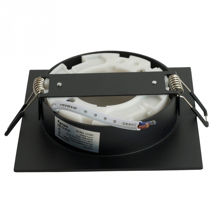 Feron DL506 51360 работает на 230 В и поддерживает максимальную мощность лампы до 15 Вт. Обратите внимание, что лампы в комплекте отсутствуют, но вы можете выбрать подходящую светодиодную лампу с цоколем GX53 для достижения желаемого эффекта освещения.