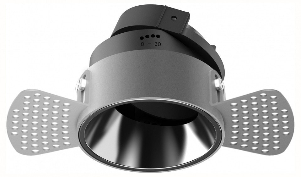 Светильник имеет глубину всего 64 мм и предназначен для установки в потолок, что позволяет сэкономить пространство и создать эффект «плавающего» света. Он идеально впишется в интерьер в стиле техно, добавляя нотки современности и элегантности.