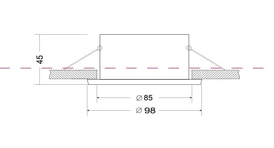 Светильник работает с светодиодными лампами типа GU10, максимальная мощность которых составляет 10 Вт. Обратите внимание, что лампы в комплекте не предусмотрены, поэтому вы можете выбрать подходящие по вашему вкусу. Удобный размер врезного отверстия в 85 мм позволяет легко установить светильник в любом потолке.