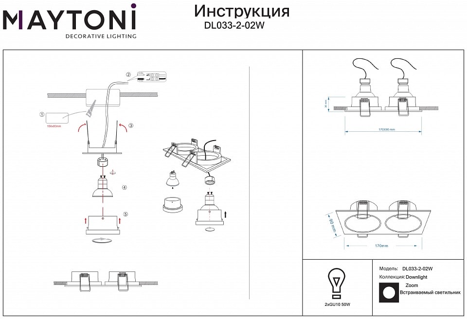 Встраиваемый светильник Maytoni Zoom DL033-2-02W