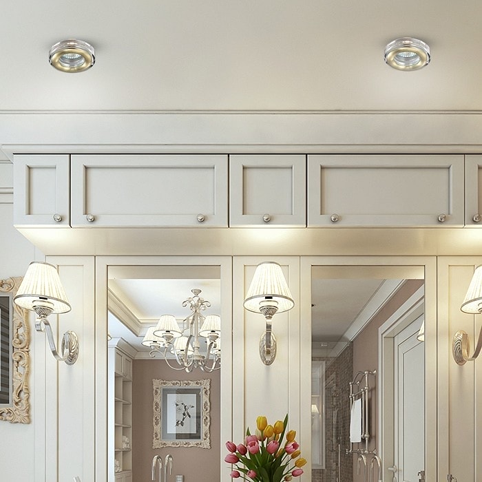 С диаметром всего 80 мм и глубиной 20 мм, светильник легко впишется в любой потолок, а его минимальная высота в 50 мм и выступ в 30 мм делают его идеальным для установки в ограниченных пространствах. Степень пылевлагозащиты IP 54 гарантирует надежную работу в условиях повышенной влажности, что делает его идеальным выбором для ванной.