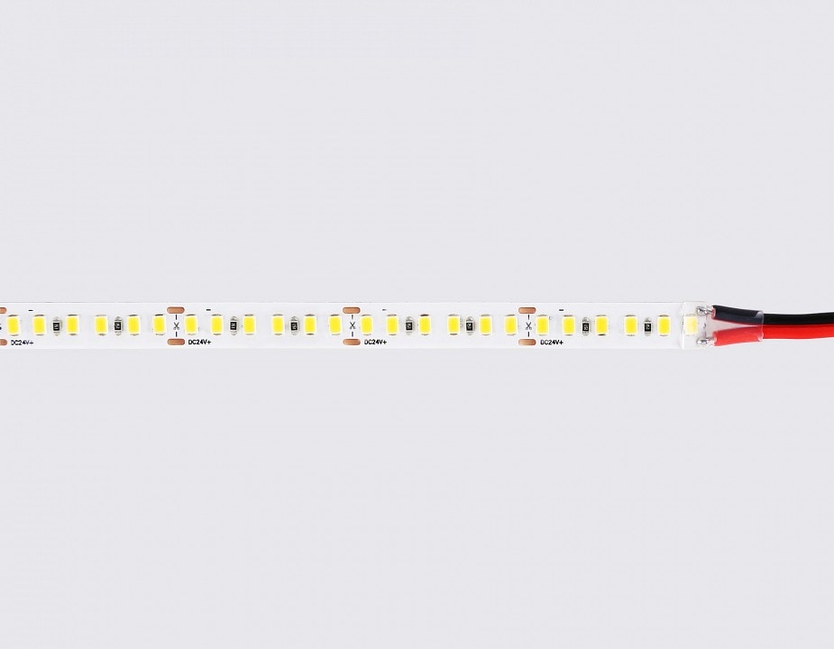 Лента работает на напряжении 24 В, что делает её безопасной и энергоэффективной. Для подключения потребуется блок питания на 24 В, который не входит в комплект. Напряжение питания 220 В позволяет легко интегрировать ленту в существующую электросеть.