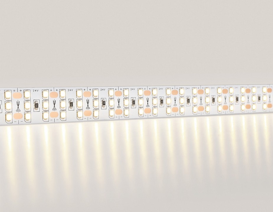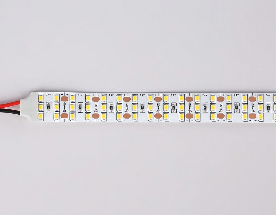 Лента работает на напряжении 24 В и требует блок питания, который можно легко приобрести отдельно. Напряжение питания 220 В делает установку простой и удобной. Степень пылевлагозащиты IP-20 гарантирует, что лента подходит для использования в помещениях, защищая её от пыли и влаги.
